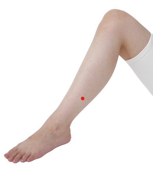 - ひざを曲げた時に、ひざの外側にできる曲がりじわの先端と、足首にある外くるぶしの最も高いポイントを結ぶ線を想定します。 その線に沿って外くるぶしから指幅5本のところが光明(こうめい:GB37)です。
